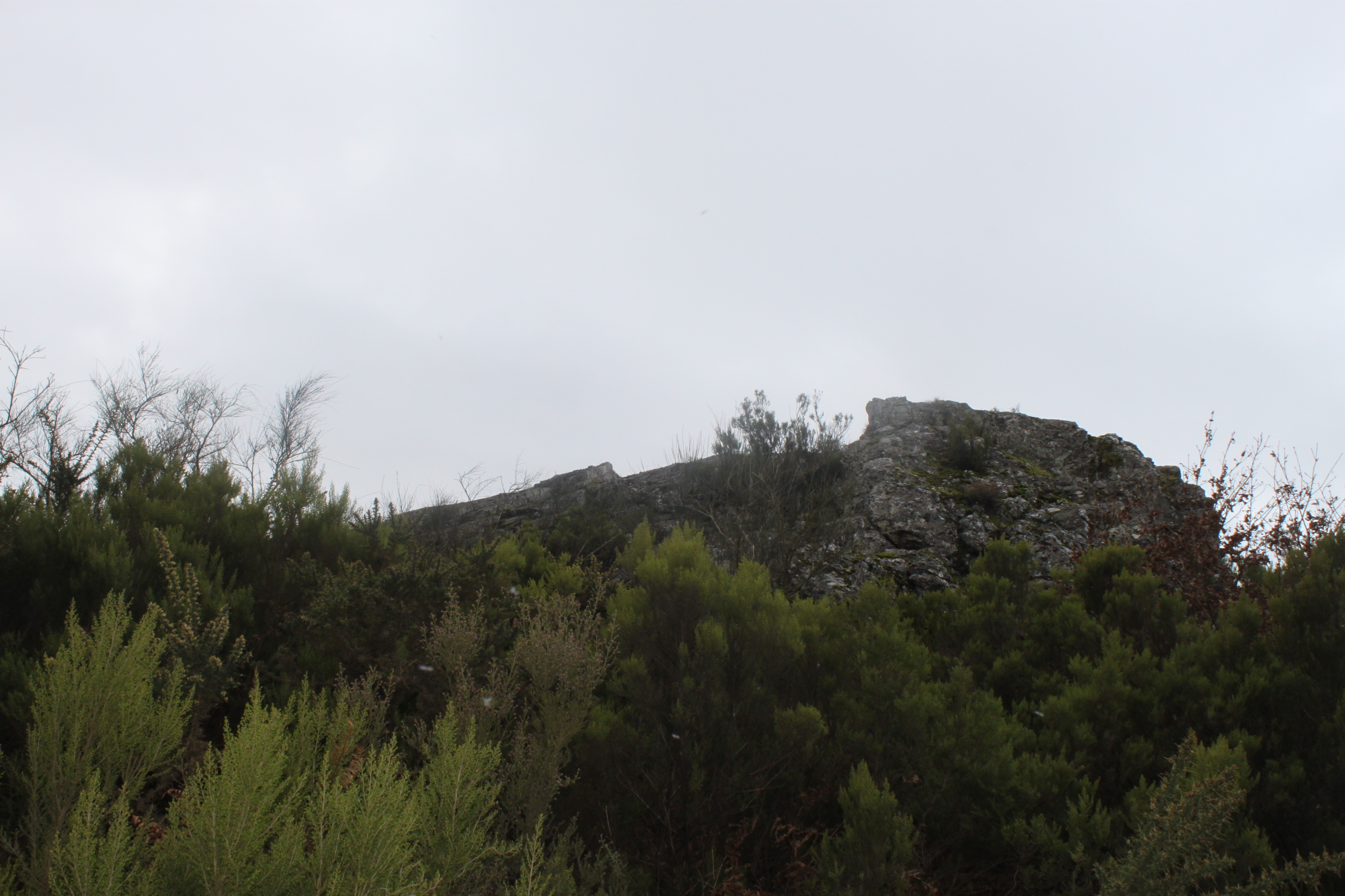 Profile of Charlotte’s Ridge, looking southwest over the hump. The sky is colorless, strangely neutral, and there is no wind. Thick reeds, bracken, and underbrush bar entry to the Ridge.