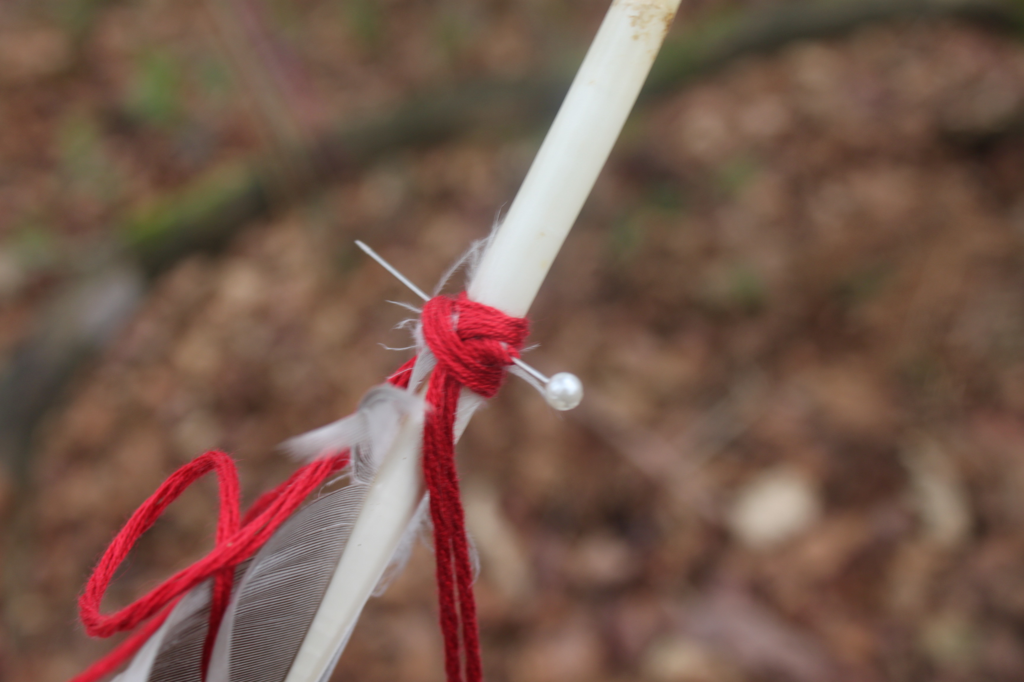 Technique of pinning feathers to cord to be added